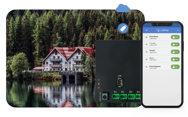 Per controllare un massimo di 2 varchi tramite apertura remota con l’applicazione mobile. Scopri l’applicazione mobile “Labkey”.