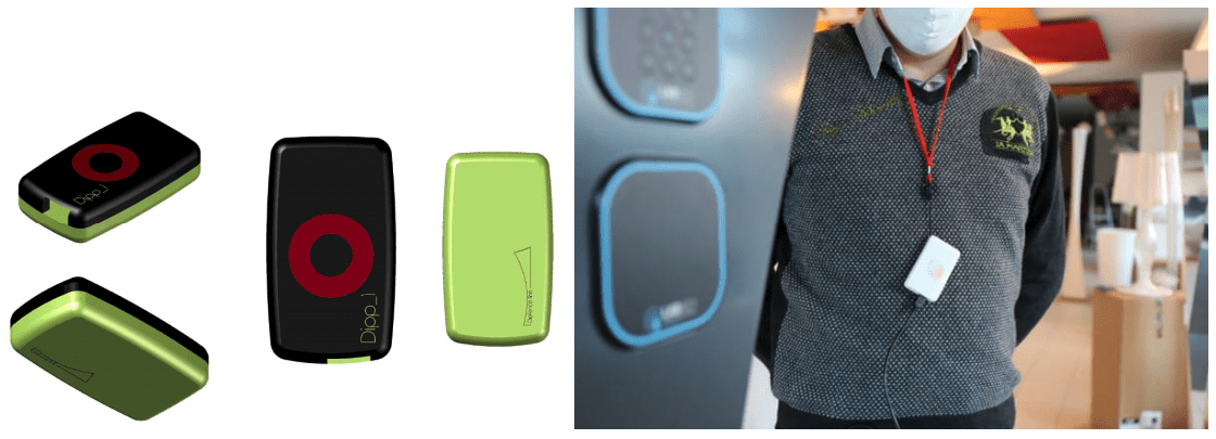 Il totem si può abbinare ad un dispositivo indossabile in grado di regolare il distanziamento sociale e di avvisare in modo tempestivo chi lo indossa di un eventuale comportamento non corretto. Il sistema integrato può produrre uno storico di dati sui contatti intercorsi tra soggetti, in conformità a quanto disposto dalle attuali normative vigenti al fine di evitare la diffusione di eventuali pandemie. É una tecnologia che consente di controllare e segnalare ai lavoratori lo spazio che intercorre fra di loro utilizzando un dispositivo indossabile in un bracciale o altro supporto, garantendo così la protezione del personale.