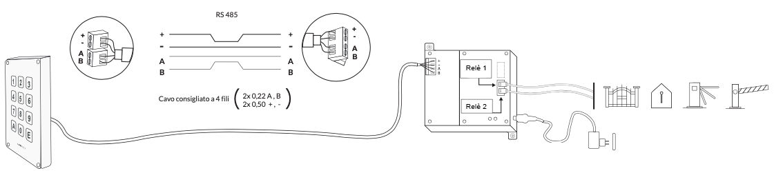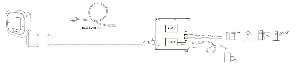 Centralina a 2 o 4 relè, da abbinare rispettivamente a un massimo di 4 o 8 dispositivi di comando a scelta tra tutte le gamme di comandi LabKey. Pannello Cloud non previsto, gestione integrata tramite applicazione mobile direttamente da rete locale.