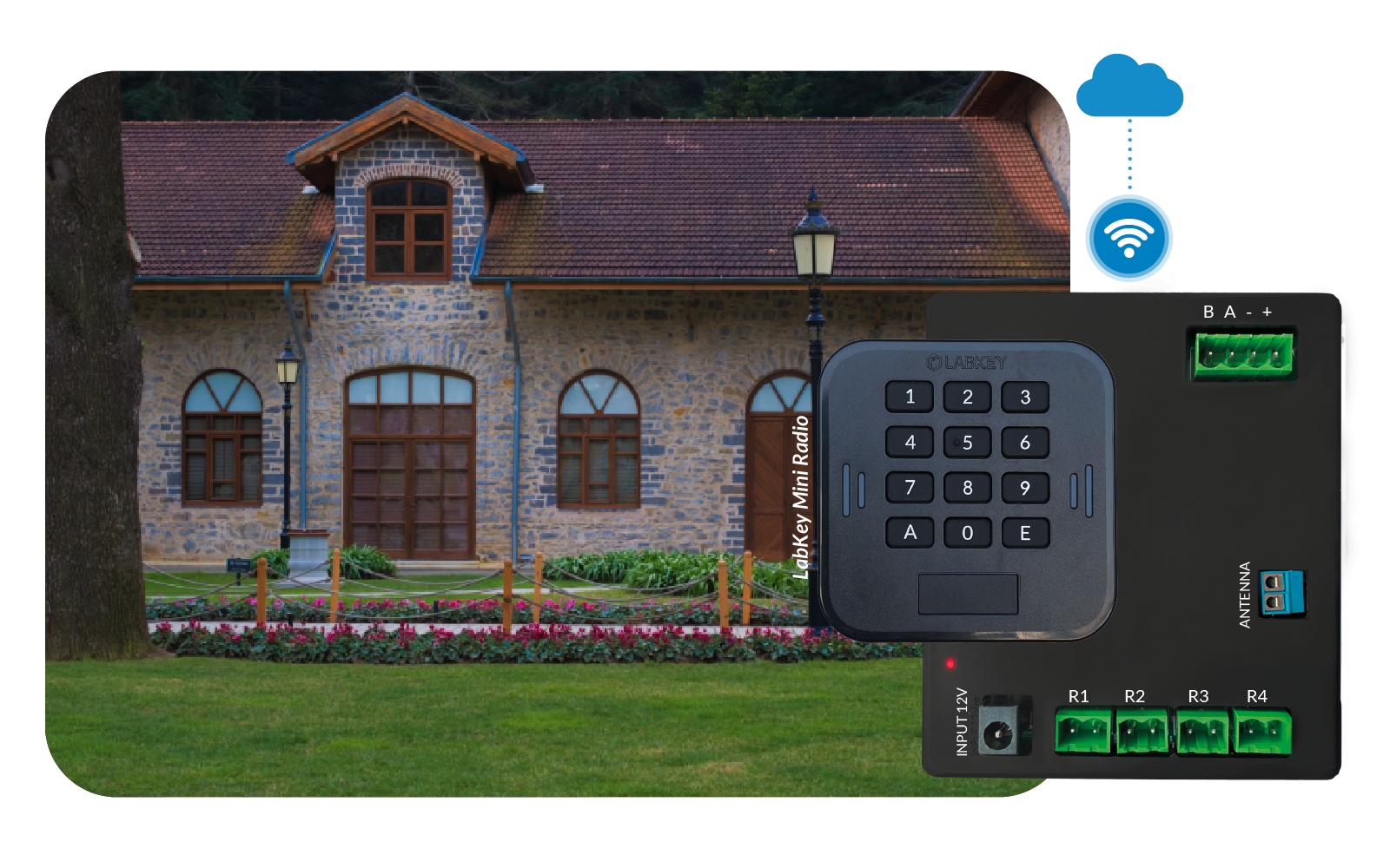 For access control of up to 4 gates with cloud management and connection via Wi-Fi. Integrated radio module.