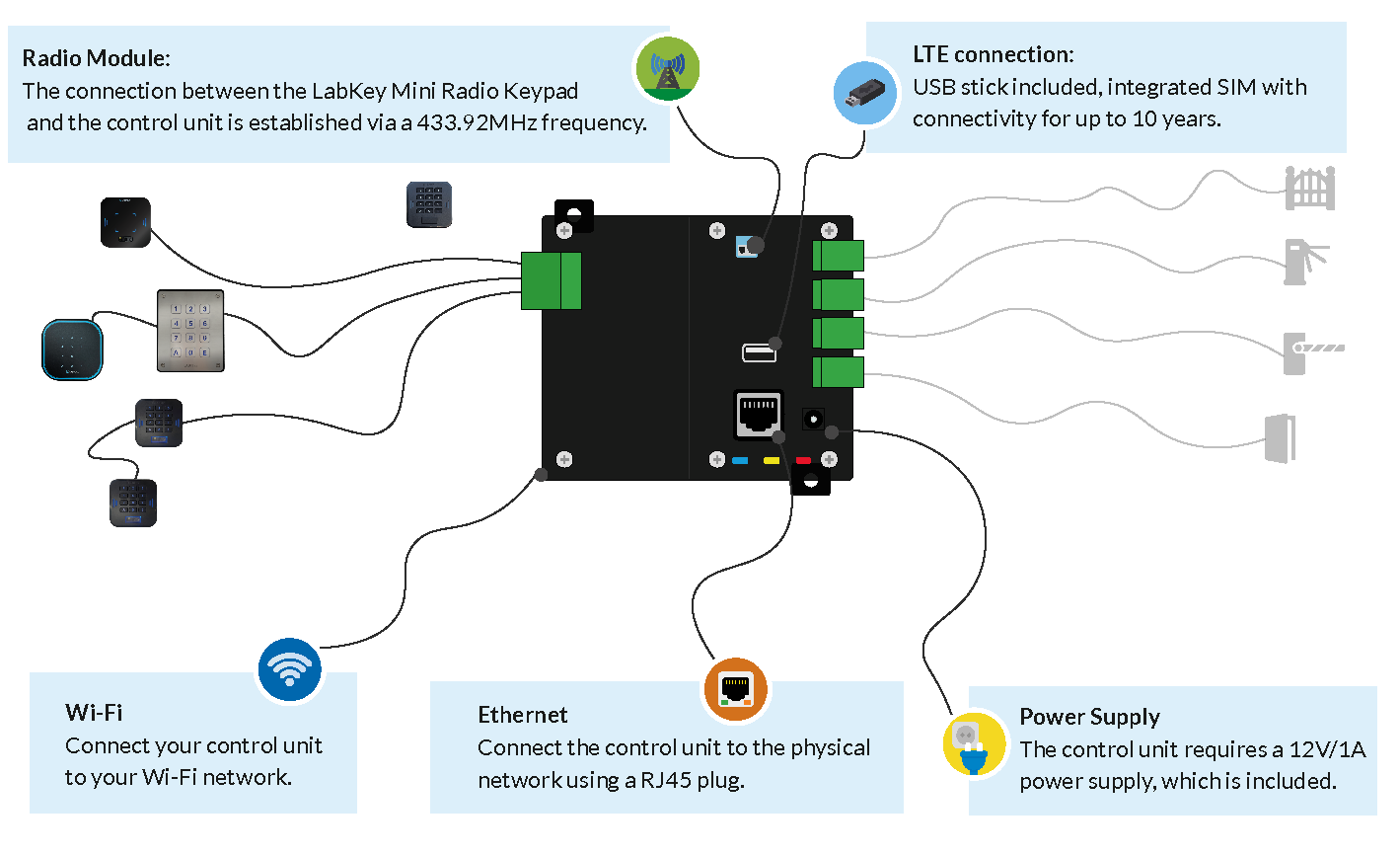 Additionally, the LTE control unit is the perfect solution for situations where Wi-Fi connectivity is unavailable while still ensuring efficient access monitoring and management: