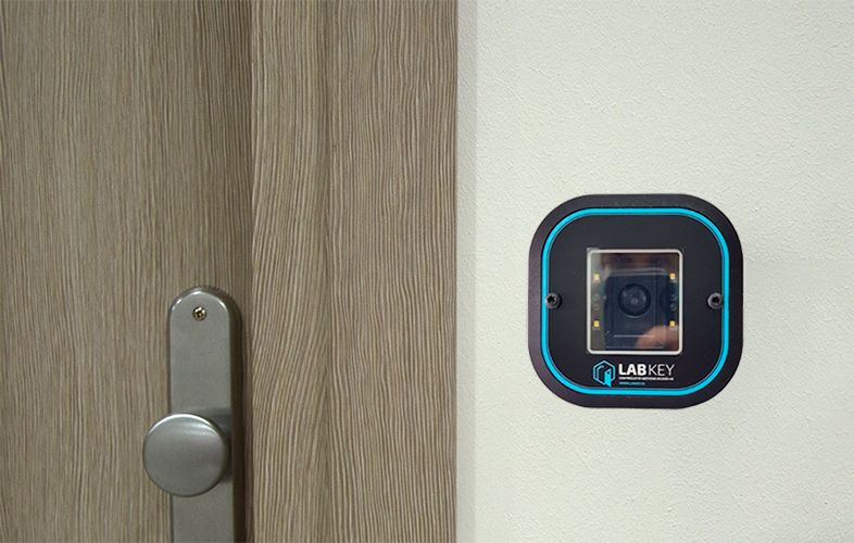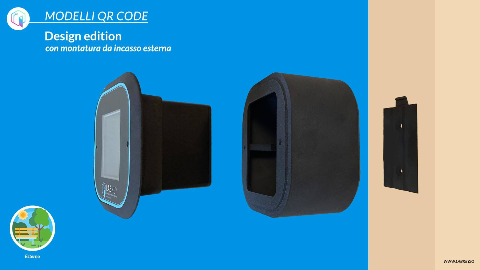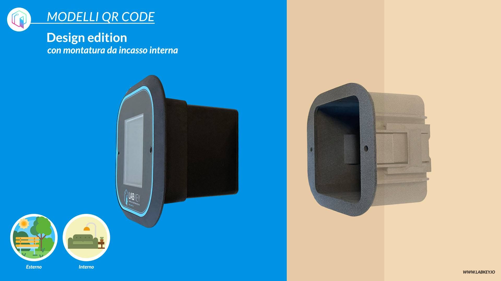 The LabKey ONE QR Code kit consists of an internal control unit and an external control device with a Design version flush-mounted QR code reader.