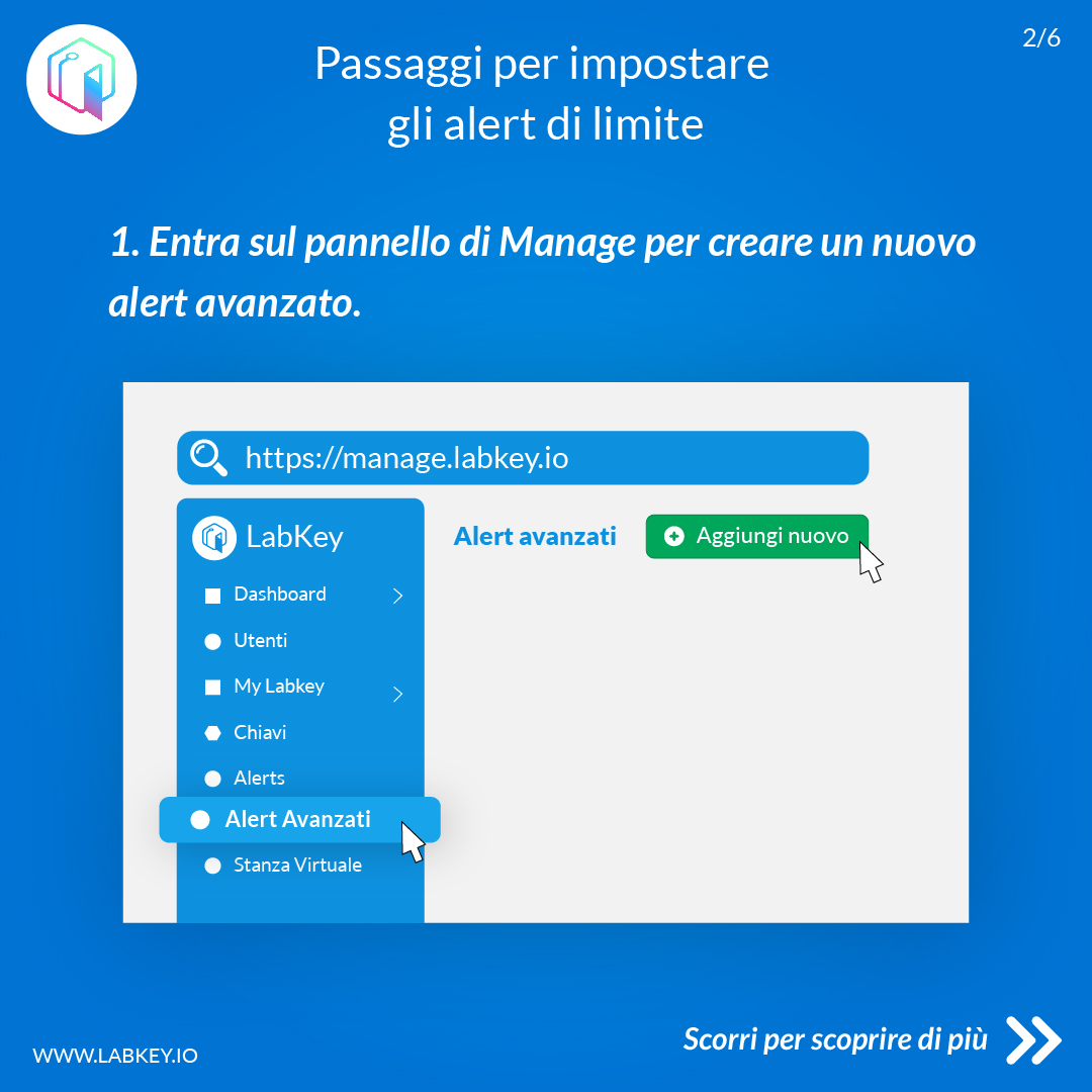 Don’t worry! The system has already been updated and from the Manage panel you can request the activation of the new Alerts, such as the pre-existing “Virtual Room” and the “Limit Alerts”.