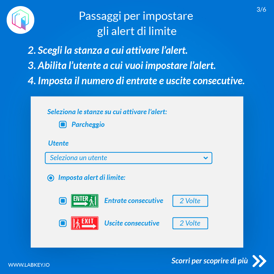 You can then enable the user to whom you want to set the alert and finally choose the number of consecutive entries and exits.